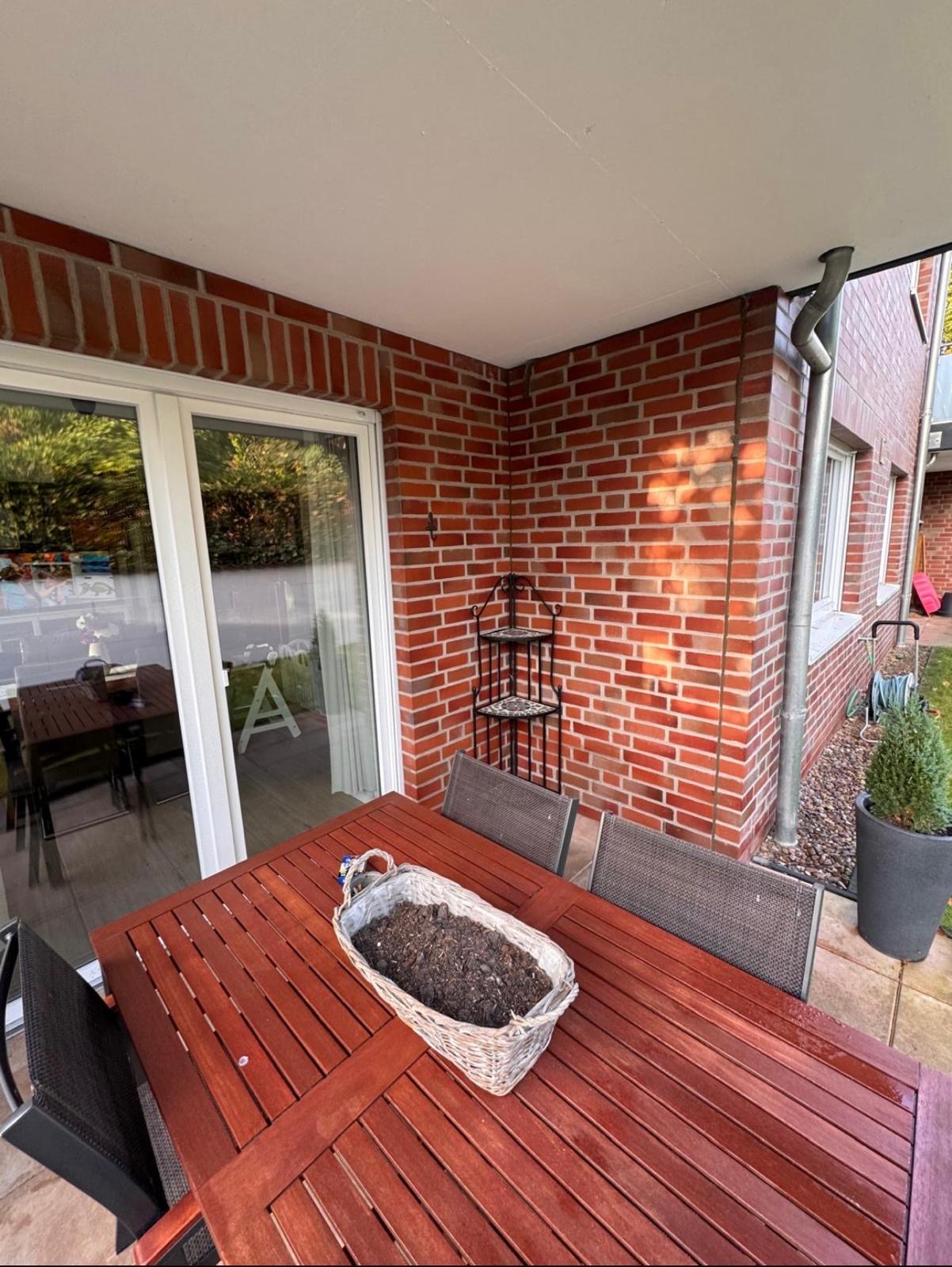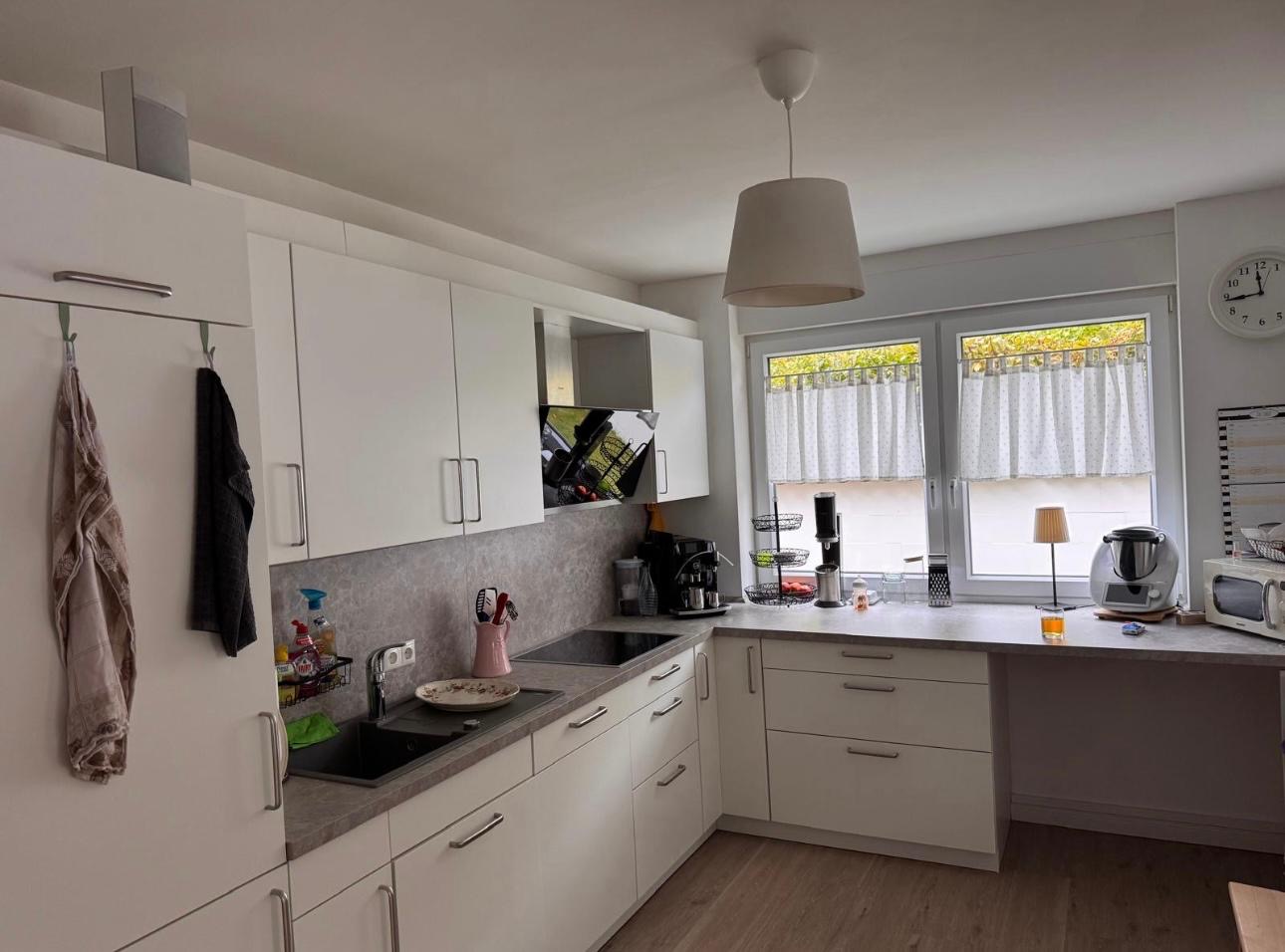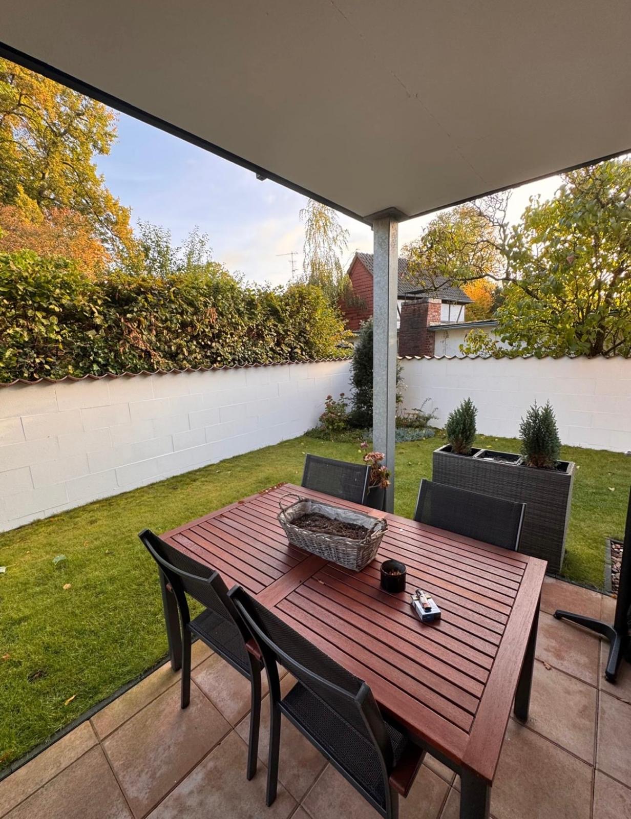 Vom über 40 qm großen Wohn-/Esszimmer mit gut ausgestatteter Einbauküche gelangen Sie auf Ihre quasi uneinsehbare Terrasse.
