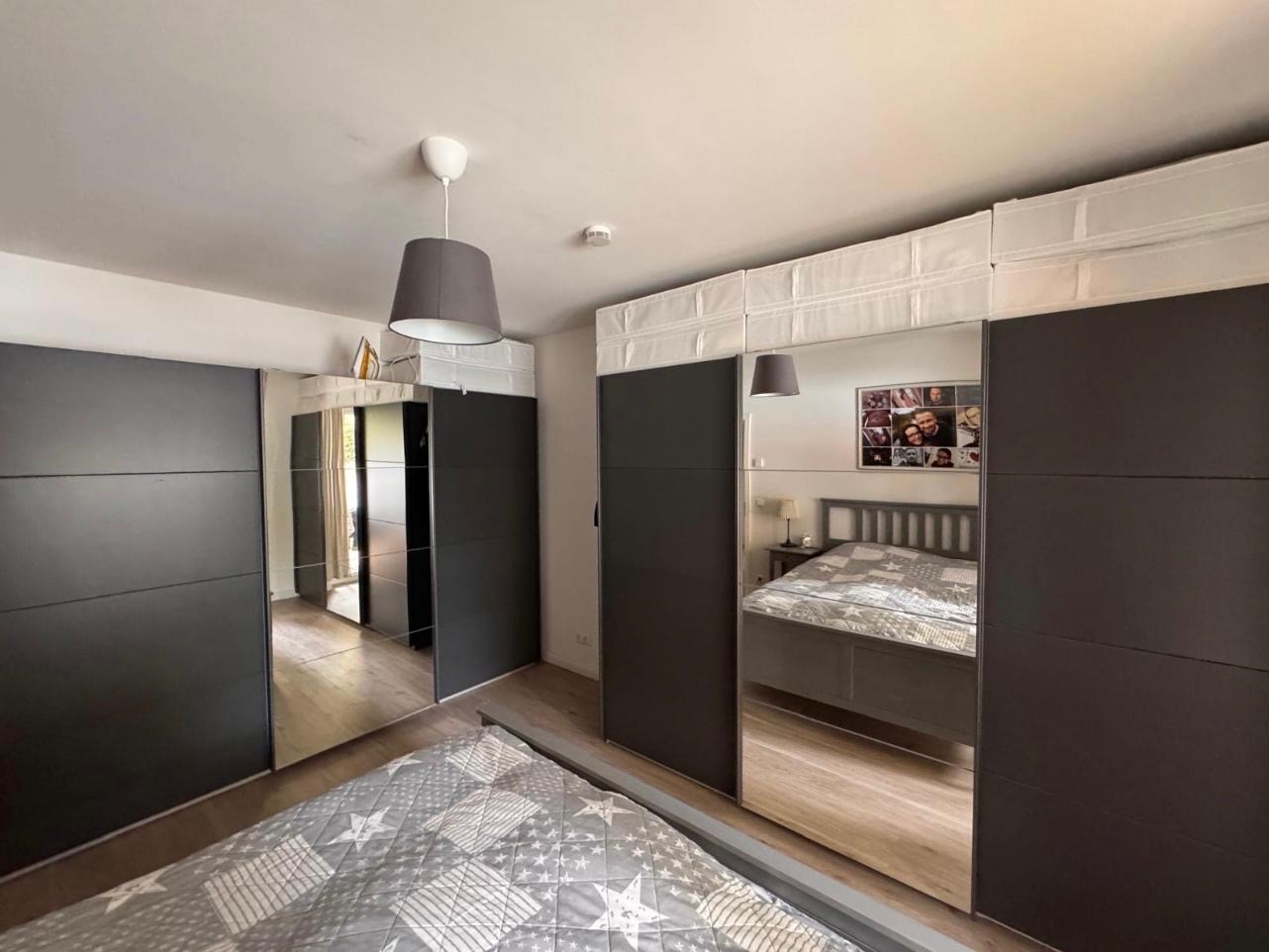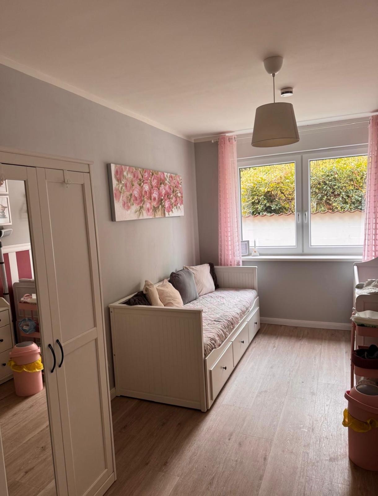 Eine weitere Terrasse erreichen Sie über die bodentiefen, dreifachverglasten Fenster vom Schlafzimmer aus. Ein drittes Zimmer kann als Büro, Ankleide- oder Gästezimmer dienen.
