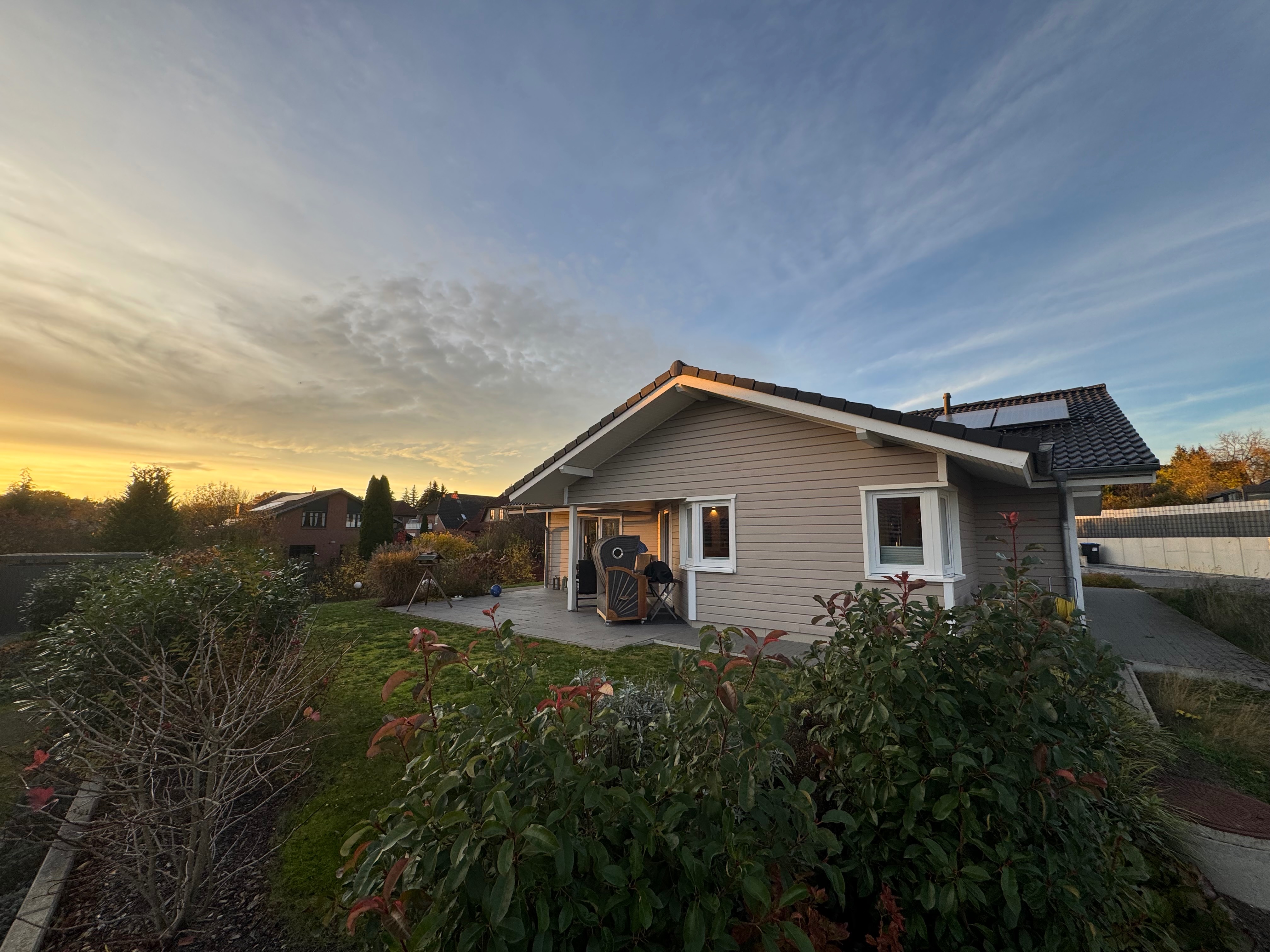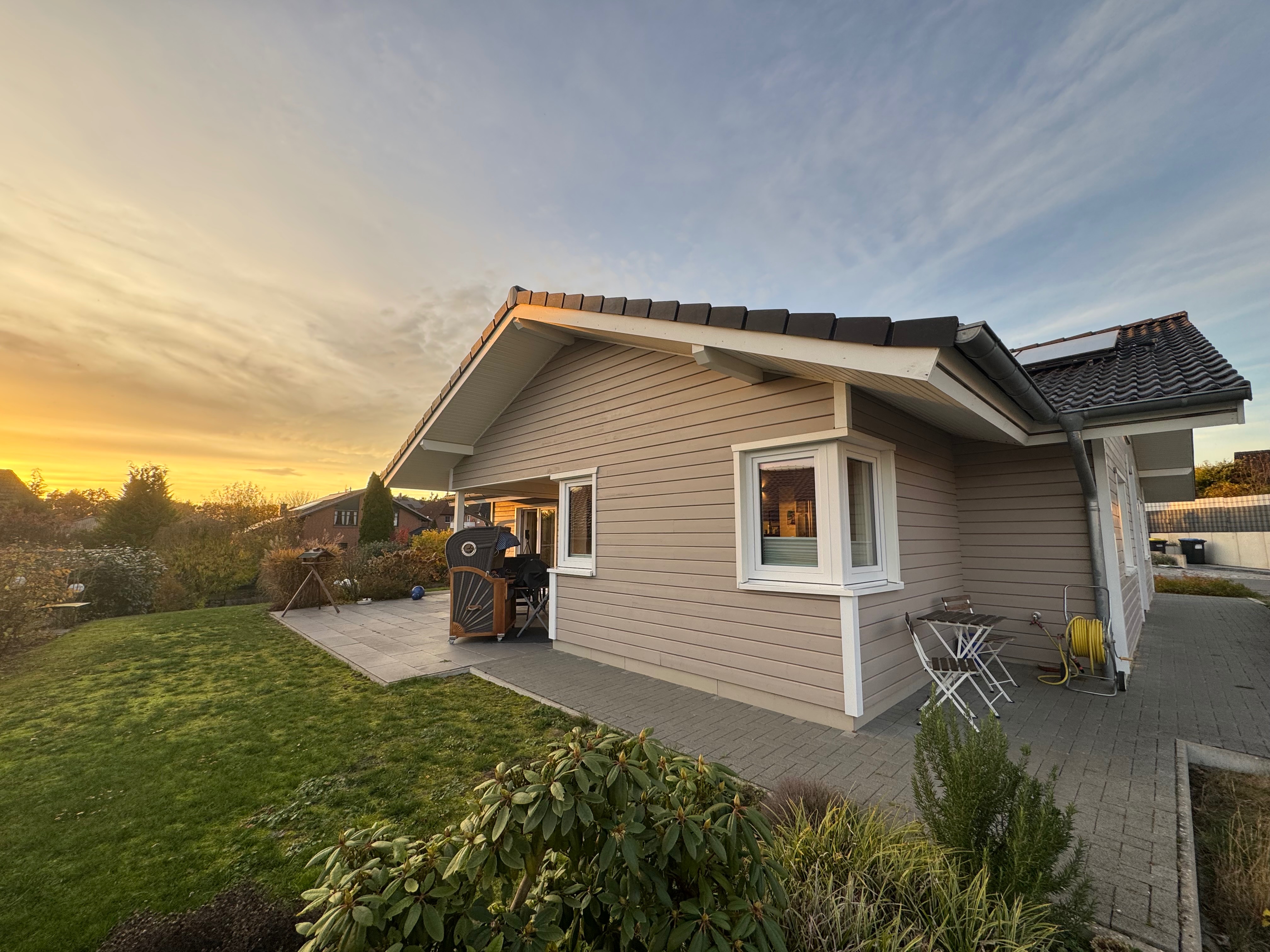 Modernes Wohnen auf einer Ebene – stilvoller Bungalow in Holzbauweise (Baujahr 2019) in erstklassiger Lage.