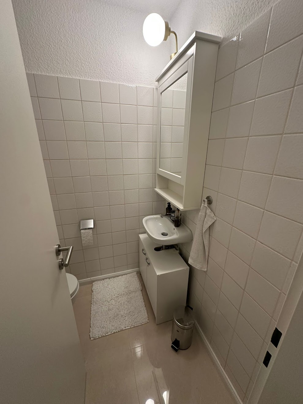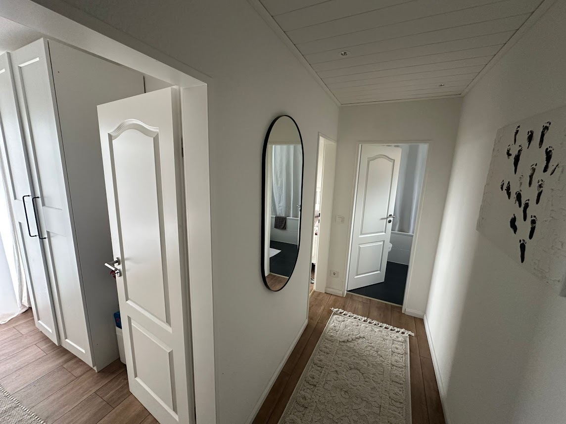 Bereits beim Betreten der Wohnung empfängt Sie ein einladender Eingangsbereich mit Platz für die Garderobe. Angrenzend befindet sich ein separates Gäste-WC mit praktischem Waschmaschinenanschluss.