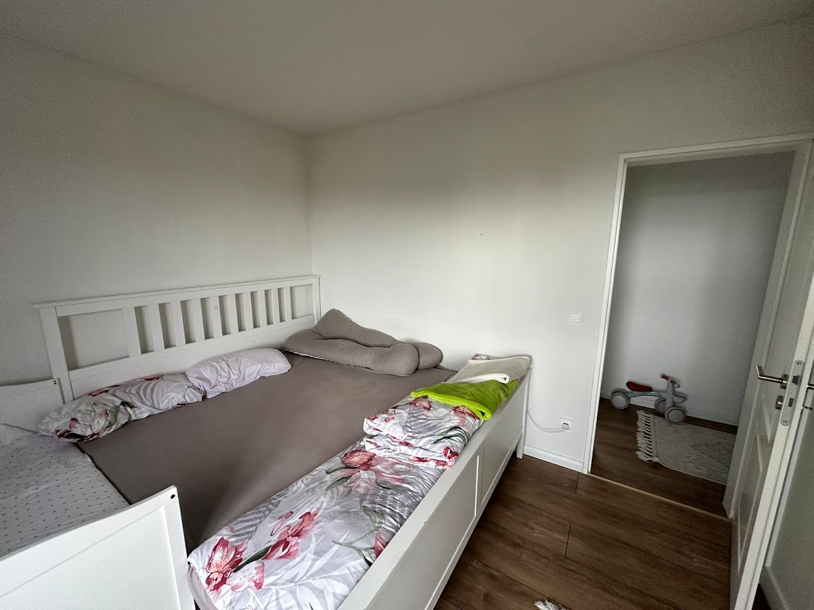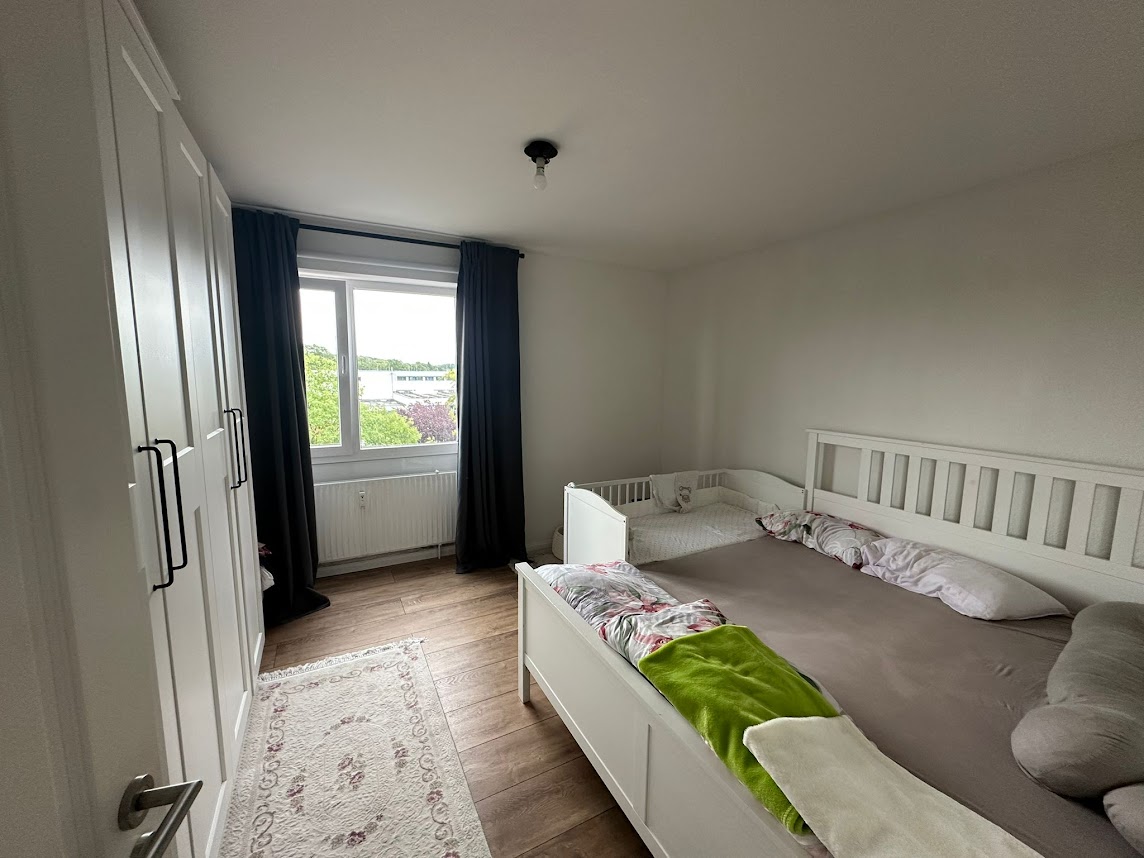 Über einen kleinen Flur erreicht man den privaten Bereich der Wohnung mit zwei gut geschnittenen Schlafzimmern. Eines der Zimmer verfügt über Zugang zu einem weiteren Balkon mit Ostausrichtung – ein wunderbarer Ort für den ersten Kaffee am Morgen.